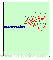 因為國內電網(wǎng)質量不一,在一些質量差的地區(qū),容易影響電磁爐觸摸按鍵的正常工作。如果不能做電源隔離,就會看到一下圖6的差別(藍色表示無按鍵,紅色表示鍵被按下),而這些圖還只是在電磁爐沒有開功率的情況下的,當電磁爐工作時產(chǎn)生的電磁輻射將會使看到的信號更加雜亂無章。在實驗中發(fā)現(xiàn),采用與外界電網(wǎng)隔離或使用軟件濾波,按鍵效果都能得到明顯改善。