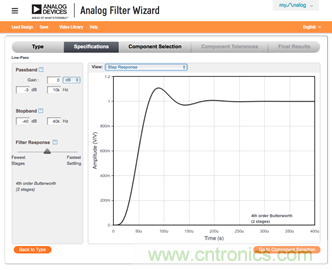 模擬濾波器向?qū)Ь褪沁@樣一種用于現(xiàn)實運算放大器的實用設(shè)計工具。這款工具讓您不必再苦尋濾波器建議,助您設(shè)計出具備所需特性的低通、高通或帶通濾波器,且準備時間更短(圖1)。