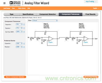 雖然模擬濾波器向?qū)Чぞ甙此杼匦赃x擇了最合適的器件,但是找到并使用和建議完全一致的器件可能很難或不切實際。因此,您可以通過元件容差功能靈活選擇電阻和電容容差(圖7)。同時,您還可以查看調(diào)整容差對濾波器性能的影響。