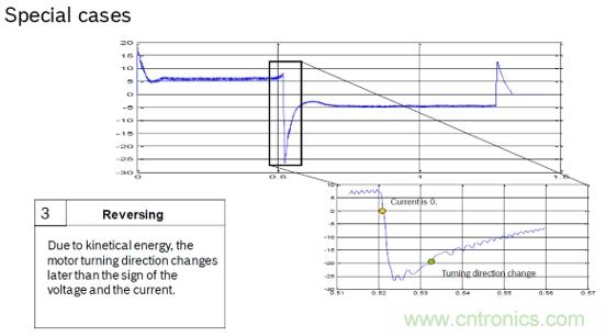 由于電機(jī)在啟動,停止,反轉(zhuǎn),堵轉(zhuǎn)時(shí)的紋波特征不明顯。如圖5和圖6,不能精準(zhǔn)的計(jì)數(shù)紋波個(gè)數(shù)。只能通過算法進(jìn)行補(bǔ)償。這樣紋波計(jì)數(shù)必然和實(shí)際的必然存在誤差。而這誤差隨著車窗操作次數(shù)的增加,誤差也會跟著累積。