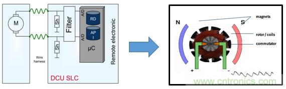 電機(jī)有磁極、轉(zhuǎn)子線圈、換向器組成。根據(jù)右手定律轉(zhuǎn)子線圈通電后再磁極磁場的作用下產(chǎn)生運(yùn)動。運(yùn)動到磁場邊緣是磁場變?nèi)酰妱觿轀p小,電流增大。換向器改變轉(zhuǎn)子線圈的電流方向,重新進(jìn)入磁場電動勢增大,電流減小。轉(zhuǎn)子線圈不斷轉(zhuǎn)動、電動勢和電流不斷變化,從而紋波不斷產(chǎn)生。所以紋波是電機(jī)的固有特性,通過計(jì)算紋波的個(gè)數(shù)就能計(jì)算出轉(zhuǎn)子換向的次數(shù),就能計(jì)算出窗戶的相對位置,結(jié)合時(shí)間就能得出電機(jī)的轉(zhuǎn)速。