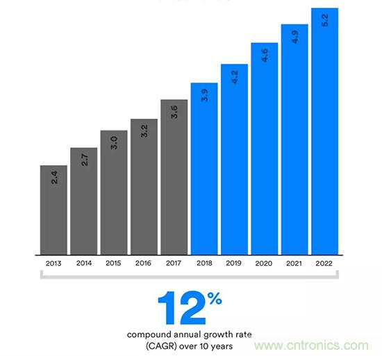 你知道去年全球藍(lán)牙設(shè)備出貨多少嗎? 藍(lán)牙技術(shù)聯(lián)盟公布的數(shù)字是36億!藍(lán)牙設(shè)備年復(fù)合增長(zhǎng)率是12%!這是一個(gè)非常值得期待的大市場(chǎng)!現(xiàn)在藍(lán)牙技術(shù)已經(jīng)從手機(jī)擴(kuò)散到音箱、汽車(chē)、智能家居、工業(yè)、智能建筑等很多領(lǐng)域。