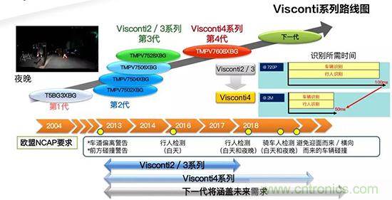東芝圖像識(shí)別處理器可并行運(yùn)行多個(gè)圖像識(shí)別應(yīng)用,并支持用于夜間行人識(shí)別的可靠系統(tǒng)解決方案。Visconti 4已經(jīng)是第四代圖像識(shí)別處理器芯片,與前一代產(chǎn)品相比,處理速度進(jìn)一步提高,它采用八核異構(gòu)架構(gòu),與前一代產(chǎn)品相比,處理時(shí)間縮短一半,識(shí)別時(shí)間縮短一半,可以降到50毫秒以內(nèi)。