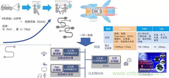 他表示隨著自動(dòng)駕駛和車(chē)聯(lián)網(wǎng)的發(fā)展,汽車(chē)搭載越來(lái)越多的傳感器和越來(lái)越多的攝像頭。這帶來(lái)的挑戰(zhàn)就是數(shù)據(jù)傳輸需求越來(lái)越高。為了提升數(shù)據(jù)傳輸,車(chē)內(nèi)線纜會(huì)長(zhǎng)達(dá)到幾公里重達(dá)幾十公斤,為了簡(jiǎn)化連接,汽車(chē)行業(yè)推出了新的車(chē)專(zhuān)用以太網(wǎng),它可與現(xiàn)有的車(chē)載用車(chē)身數(shù)據(jù)通訊系統(tǒng)通信,所以激發(fā)了車(chē)載以太網(wǎng)橋接芯片的需求。