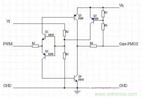 2,用小幅度的PWM信號驅動高gate電壓需求的MOS管。
