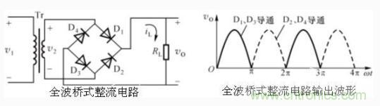 整流電路的任務是利用二極管的單向導電性,把正、負交變的50Hz電網電壓變成單方向脈動的直流電壓。