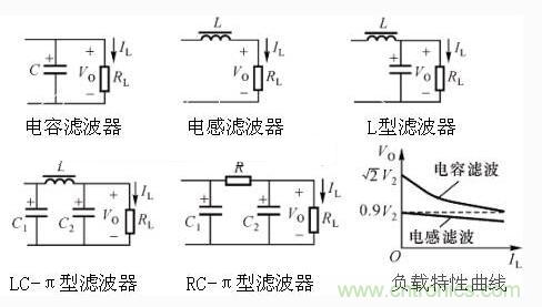 為確保二極管安全工作,要求:不同電子設備要求其電源電壓的平滑程度不同,為此可采用不同的濾波電路。常見的有電容濾波、電感濾波和復式濾波電路(兩個或兩個以上濾波元件組成)。