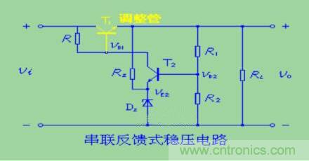 如把串聯(lián)穩(wěn)壓電路看作反饋放大器(輸入為VI,輸出為Vo),則這種電路屬于電壓串聯(lián)負反饋 。