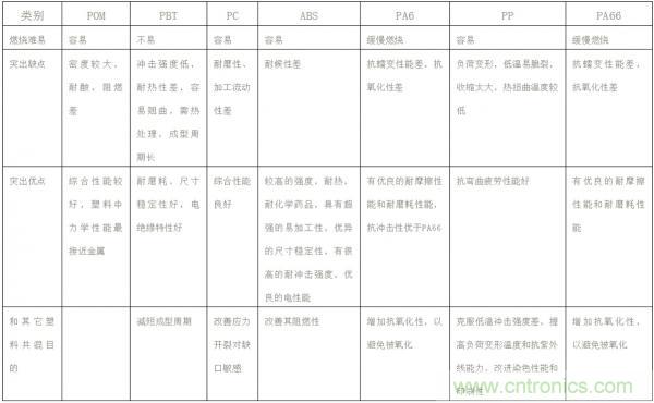 常用的材質(zhì)主要有PA6、PA66、ABS、PBT、pp等,筆者總結(jié)了它們的具體性能差異,見表2。設(shè)計插件時可根據(jù)不同的需求選擇不同的材質(zhì),還可根據(jù)實際情況在塑料中添加阻燃或增強(qiáng)材料,以達(dá)到增強(qiáng)或阻燃的目的,如添加玻璃纖維增強(qiáng)等。