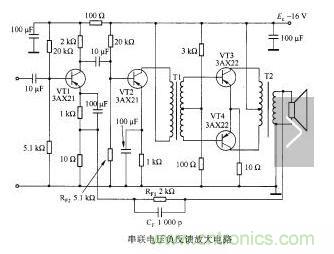 負(fù)反饋電路雖然會(huì)削弱放大器的輸人信號(hào),降低放大器的增益,但可以減小失真,提高放大器的穩(wěn)定性,所以適當(dāng)加人一些負(fù)反饋,可以大幅度提高放大器的質(zhì)量。一部性能優(yōu)良的擴(kuò)音機(jī)或收音機(jī),常常采用多種形式的負(fù)反饋電路。