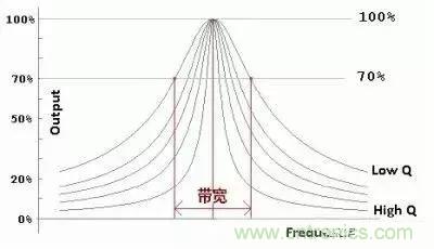 有些電路我們需要高 Q 值,比如振蕩器,Q 值越高越容易起振,比如收音機機調(diào)諧回路,Q 值越高選臺時越不容易串臺,這主要是 Q 值高時-3dB帶寬變狹的緣故。如下圖所示: