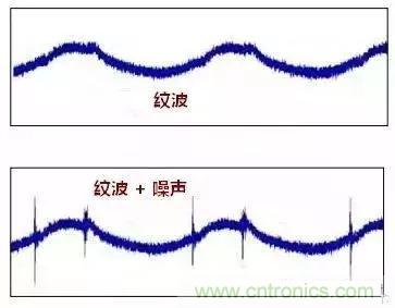 常有人描述問題時把紋波和噪聲混為一談。紋波是低頻的,噪聲是疊加在紋波的干擾信號。如圖: