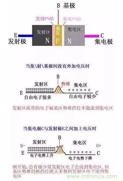 發(fā)射區(qū)高摻雜:為了便于發(fā)射結發(fā)射電子,發(fā)射區(qū)半導體摻濃度高于基區(qū)的摻雜濃度,且發(fā)射結的面積較小;