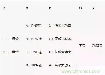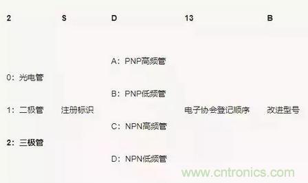 不同的國家/地區(qū)對三極管型號命名方式不同。還有很多廠家使用自己的命名方式。