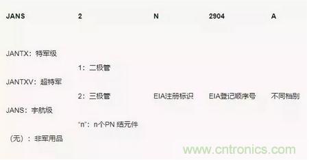 例:JANS2N2904 宇航級三極管