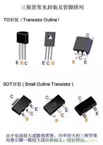 當前,塑料封裝是三極管的主流封裝形式,其中“TO”和“SOT”形式封裝最為常見。
