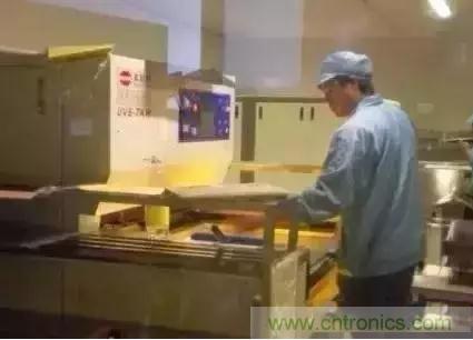 在覆銅板表面會(huì)涂一層感光液體,經(jīng)過80度的溫試烤干,再用菲林貼在PCB板上,再經(jīng)過紫外線曝光機(jī)曝光,撕下菲林。