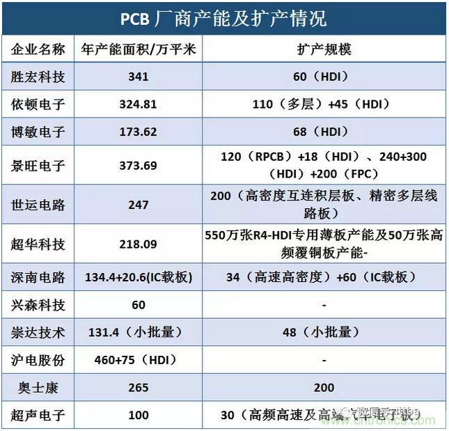 超聲電子:成立于1997年,高階HDI技術(shù)領(lǐng)先。產(chǎn)品包含雙面及多層印制電路板、液晶顯示器、超薄及特種覆銅板、超聲電子儀器等,是蘋果、博世、法雷奧等全球知名企業(yè)長(zhǎng)期供應(yīng)商。PCB為主要營(yíng)收來源,2017年?duì)I收占比53%。