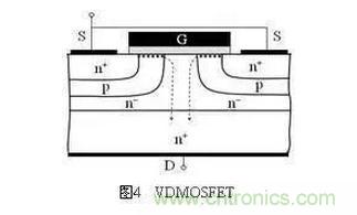 【答】如圖4所示,源-漏電流是從芯片表面向下流動的,并在電流通路的兩側(cè)是pn結(jié),因此這種電流輸運(yùn)的過程,從工作原理上來看,就相當(dāng)于是一個寄生JFET。從而可以把VDMOSFET等效為一個MOSFET與一個寄生JFET的串聯(lián)組合,其中很大部分n-漂移區(qū)就相當(dāng)于是寄生JFET的溝道。