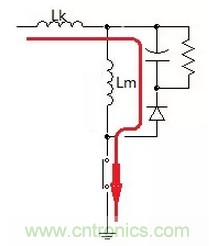 假設(shè)初級兩線圈耦合的好,當(dāng)開關(guān)關(guān)閉時上圖中的(a)就等效于圖(b)其結(jié)果為主電感被免疫掉了,換言之電容Cm只吸收漏感能量不吸收主電感能量。