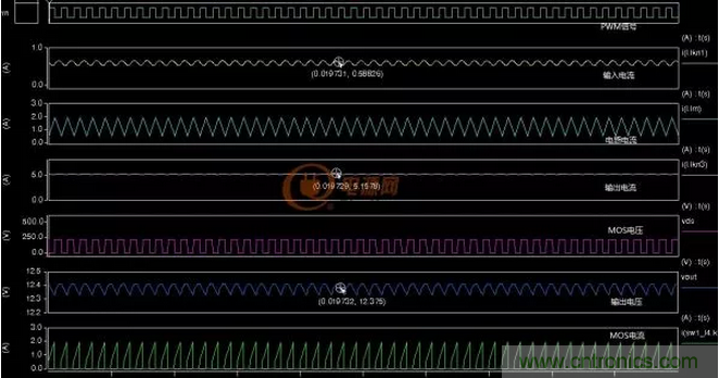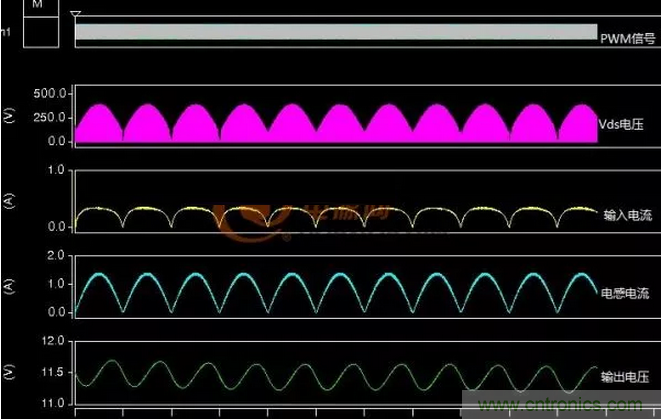 從等效電路看漏感等效為濾波電感,電容Cm等效為母線電容,之前的仿真增大漏感后輸入電流為連續(xù)也能從這個等效電路得到驗證??傊?jīng)過這個電路的變換漏感可以被利用起來,既能實現(xiàn)輸入電流的連續(xù)又能提高電路的效率,還有關(guān)鍵一點簡單而又低成本。
