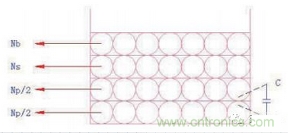 變壓器的分布電容主要為4個(gè)部分:繞組匝間電容,層間電容,繞組電容和雜散電容。