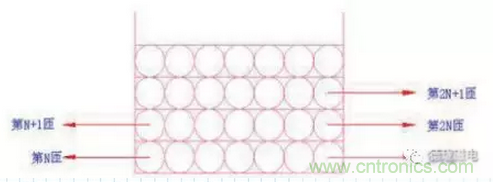 方法三:可以采用交叉堆疊繞法來(lái)降低層間電容,如下圖