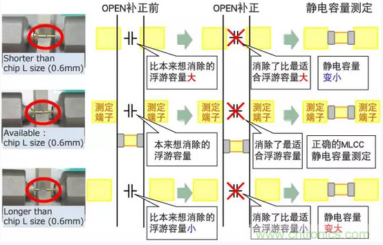 <OPEN補(bǔ)正時(shí)的重點(diǎn)>OPEN補(bǔ)正端子間距離和靜電容量測(cè)定結(jié)果