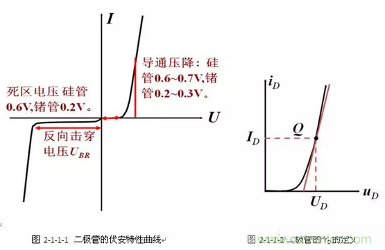 如圖2-1-1-2所示,rD是二極管特性曲線上工作點(diǎn)Q 附近電壓的變化與電流的變化之比:rD=△UD/△iD