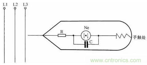 用電阻、電容、氖泡可組成一小型電源相序指示器。當電源按順相序L1、L2、L3接入時,氖燈就亮;按逆相序L2、L1、L3接入時則氖燈不亮。線路如圖25(a)所示。
