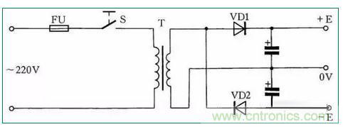 在實際工作中,往往用電設備為雙電源,并且對稱。在手頭只有單電源的情況下,按圖37所示連接,即可使其變?yōu)殡p對稱電源使用。