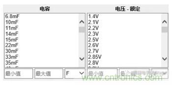圖4:超級(jí)電容器的電容及額定電壓篩選列表