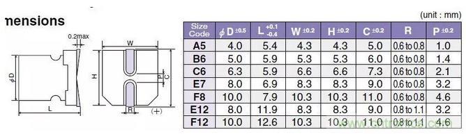 固態(tài)電容的封裝尺寸