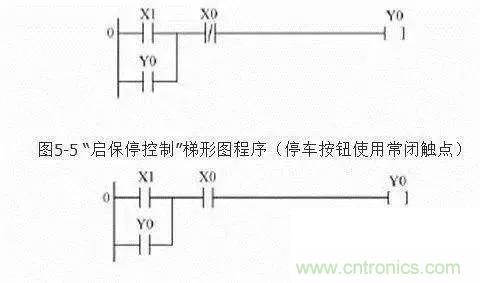 輸入端的電氣原理圖中停止按鈕SB0用常閉觸點,串在控制線中,用于停機控制。 啟動按鈕SB1用常開觸點。在設計的兩個梯形圖完成的控制功能相同,但停機信號X0使用的觸點類型不同,那么連接在端點的外部停機按鈕觸點類型也就不同