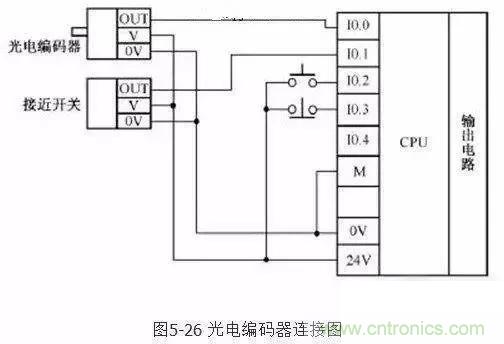 直流有源輸入輸入信號一般都是24V,這類信號與其他無源開關量信號混合接入PLC輸入點時電壓的0V點一定要接。上圖輸入點I0.0,I0.1連接光電編碼器,接近開關的輸出OUT信號,它們的驅動電源由PLC自身的24V電壓提供