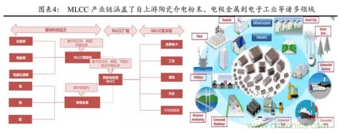 MLCC產(chǎn)業(yè)的下游幾乎涵蓋了電子工業(yè)全領(lǐng)域,如消費(fèi)電子、工業(yè)、通信、汽車及軍工等。