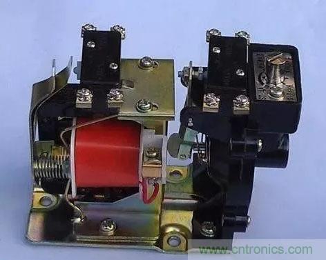 其中通電延時(shí)型時(shí)間繼電器動(dòng)作過(guò)程是:線圈不通電時(shí),線圈的銜鐵釋放壓住動(dòng)作杠桿,延時(shí)和瞬時(shí)觸點(diǎn)不動(dòng)作;當(dāng)線圈得電吸合后,銜鐵被吸合,銜鐵上的壓板首先將瞬時(shí)觸點(diǎn)按下,觸點(diǎn)動(dòng)作發(fā)出瞬時(shí)信號(hào)。這是因?yàn)殂曡F吸合動(dòng)作杠桿不受壓力,在助力彈簧作用下慢慢動(dòng)作(也就是延時(shí)),動(dòng)作到達(dá)最大位置杠桿上的壓板按動(dòng)延時(shí)觸點(diǎn),觸點(diǎn)動(dòng)作發(fā)出延時(shí)信號(hào),直至線圈無(wú)電釋放,動(dòng)作結(jié)束。其實(shí)物圖片如下圖: