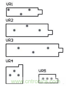 電位器的原理圖符號為“POT1”,“POT2”,對應的電位器封裝為“VR-1”到“VR-5”。