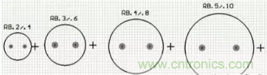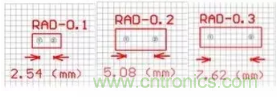 電解電容對應的元器件封裝為RB系列,如“RB.1/.2”到“RB.5/1.0”,其中“.1/.2”分別指電容的焊盤間距和外形尺寸。