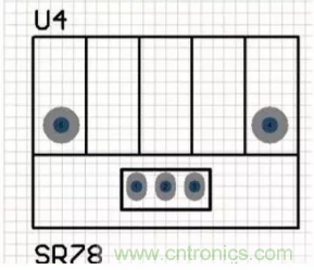 直插式元器件封裝的焊盤一般貫穿整個電路板,從頂層穿下,在底層進行元器件的引腳焊接,如圖所示。