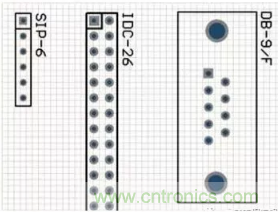 (c)整流橋的元器件封裝形式 圖F1-18 常用的整流橋 (7) 接插件。在電路板設計中,經(jīng)常用到的接插件有單排插座、雙排插座和一些專用的接口等,如圖F1-19所示。