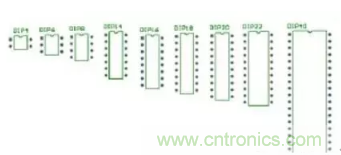 圖F1-22 雙列直插式集成電路芯片的元器件封裝