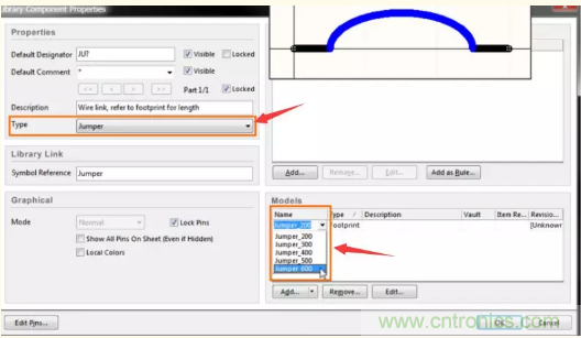 一旦創(chuàng)建了符號(hào),注意:A.設(shè)置默認(rèn)的指示符,在本例中為ju? B.將組件類(lèi)型設(shè)置為跳線 C.將各種跳線腳印添加到模型列表中,如上圖所示 D.定義所需的其他組件屬性,例如描述和任何必需的組件參數(shù)。一旦設(shè)計(jì)好了跳線器,就可以把它們中的一些放到原理圖上。在這個(gè)階段,你可能不知道自己需要多少個(gè)跳線,但額外的可以很容易地刪除。它們是在原理圖上,可以確保他們進(jìn)入BOOM。如下圖: