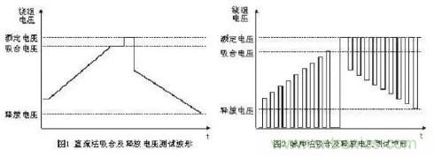 繼電器的吸合電壓和釋放電壓的測(cè)試方法有兩種,一種是直流法,一種是脈沖法。這兩種測(cè)試方法的繞組加電波形見(jiàn)圖1和圖2。傳統(tǒng)手工測(cè)試一般都采用直流法,因其比較容易實(shí)現(xiàn)。只需將一直流穩(wěn)壓電源接在被測(cè)繼電器的繞組上,緩慢調(diào)節(jié)穩(wěn)壓源電壓,同時(shí)監(jiān)視繼電器觸點(diǎn)的狀態(tài)(量通路,用指示燈顯示,甚至聽(tīng)聲音)即可測(cè)到吸合電壓和釋放電壓。