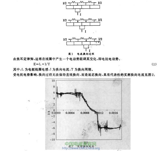 火花使換向區(qū)域附近的空氣介質電離,在空氣中形成帶電粒子,形成電磁干擾;