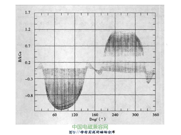 則會嚴重影響EMi,且不易被發(fā)現(xiàn)。以圖5為例.兩磁極在靠近中性線的位置處均有與該磁極極性相反的一段反波.仔細分析借偏的原理可知,該反波事實上相當于一個與正常換向極作用相反的附加磁極,當其被轉子換向線圈切割時,產(chǎn)生的電動勢與電抗電動勢同向,也就是會惡化換向;當其分布角度超過借偏角度時,會完全抹殺借偏的作用。