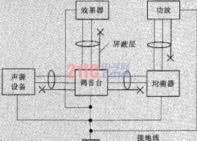 在音頻系統(tǒng)中,必須要求整個系統(tǒng)有良好的接地,接地電阻要4歐姆。否則音頻系統(tǒng)中設備由于各種輻射和電磁感應產(chǎn)生的感應電荷將不能夠流入大地,從而形成噪聲電壓疊加到音頻信號中。