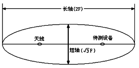 10kHz~1000MHz頻段的輻射測試場地應(yīng)該是一個(gè)空曠、平坦的場地,在其邊界范圍內(nèi)無架空線,附近無反射結(jié)構(gòu)物(如鋼筋水泥建筑和高大樹木等),而且具有足夠大的尺寸,使天線、試品和反射結(jié)構(gòu)物之間能充分分開。滿足標(biāo)準(zhǔn)的輻射測試場地應(yīng)該是一個(gè)由長軸等于兩倍焦距(F)、短軸等于倍焦距的橢圓所包圍的場地,如圖1所示。試驗(yàn)時(shí),EUT和測量天線將分別處在兩個(gè)焦點(diǎn)上。