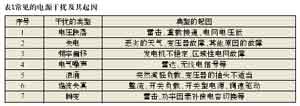 造成電源干擾復雜性的第二個原因是干擾表現的形式很多,從持續(xù)期很短的尖峰干擾直至電網完全失電,其中也包括了電壓的變化(如電壓跌落、浪涌和中斷)、頻率變化、波形失真(包括電壓和電流的)、持續(xù)噪聲或雜波,以及瞬變等。我們根據國內外的抗擾度測試的一系列標準和實際應用中常常出現的問題,總結了電源干擾的常見起因,如表1所示。