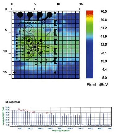 在任何新PCB的開發(fā)過程中,設(shè)計(jì)工程師都必須找出設(shè)計(jì)之外的輻射體或射頻泄漏,并對(duì)其進(jìn)行描述和處理以通過一致性測(cè)試。可能的輻射體包括高速、大功率器件以及具有高密度或高復(fù)雜度的器件。掃描系統(tǒng)以疊加在Gerber文件上的形式顯示空間輻射特性,因此測(cè)試人員可以準(zhǔn)確地找出所有輻射問題的來(lái)源。設(shè)計(jì)工程師可以在采取了相應(yīng)的解決措施之后,對(duì)器件進(jìn)行重新測(cè)試并立即量化出校正設(shè)計(jì)后的效果。